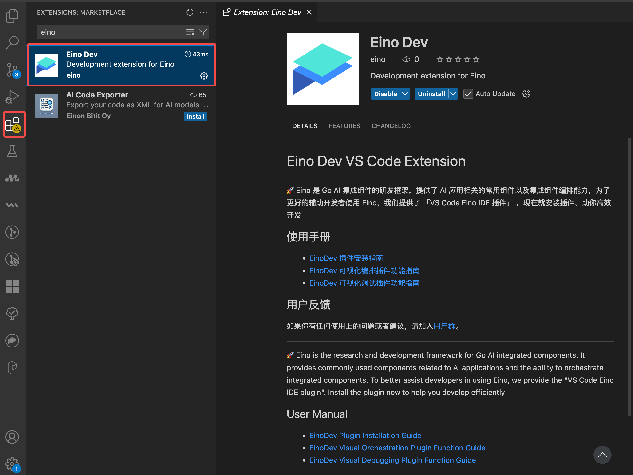 | Plugin Version | GoLand IDE Version | VS Code Version | eino-ext/devops Version |